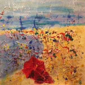 RED beach umbrella